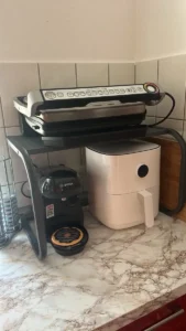 Celkově jsem spokojená, police je pevná a šetří místo v kuchyni. Jediná výtka je trochu tenká gumová podložka na jednom rohu a balení mělo lehké oděrky. Psala jsem podpoře a ochotně mi poradili, takže dobré.